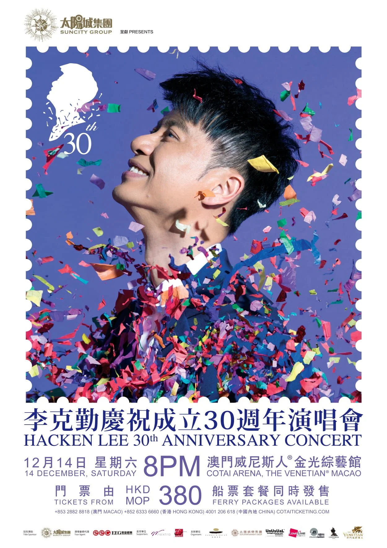 著名香港歌手李克勤將於12月14日假澳門金光綜藝館舉行《李克勤慶祝成立30週年演唱會澳門站》。出道至今已經發行超過70張專輯,作為粵語樂壇最輝煌時期嘅代表人物,李克勤近年更不斷挑戰自我,參與《我是歌手》、《蒙面歌王》、《中國夢之聲 - 我們的歌》等人氣歌唱節目,以嶄新編曲嘅音樂實力以及持續求變嘅專業心態,為歌迷展現殿堂級嘅音樂享受。
