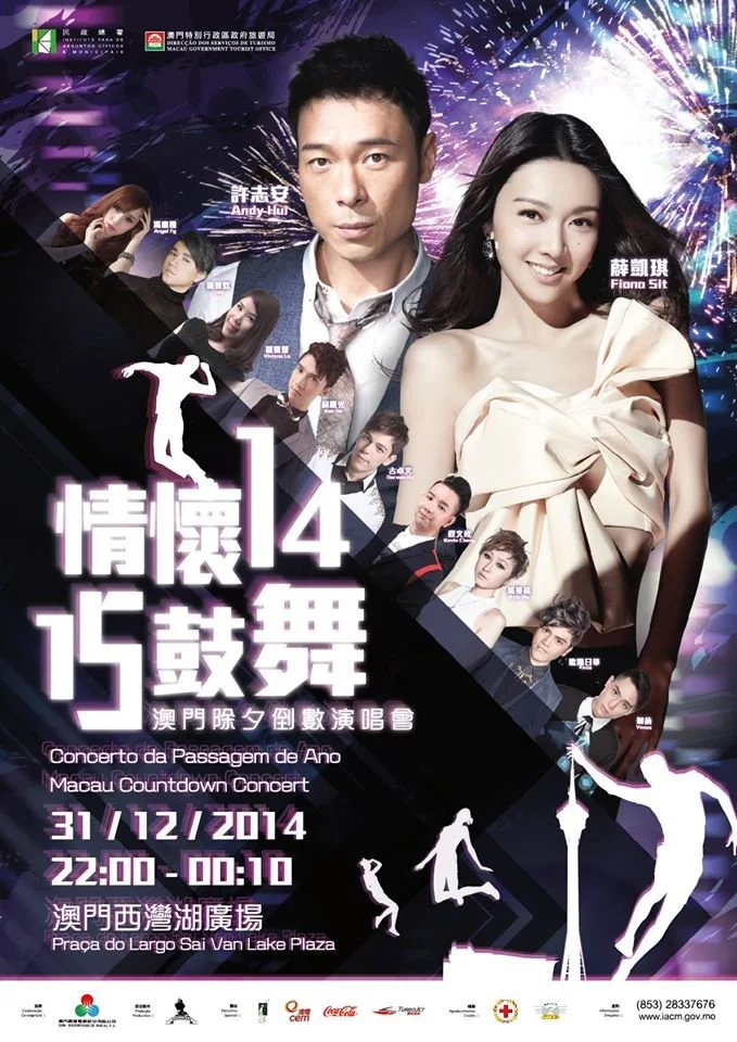 今年的除夕倒數演唱會,以「情懷14.15鼓舞」為主題,於2014年12月31日,晚上10時在西灣湖廣場舉行。演唱會邀請到來自香港的實力派和偶像派歌手,再加上本澳多位年青歌手合作,穿插演唱;香港歌手包括許志安、薛凱琪,而本澳歌手則包括馮惠雅、施連奴、羅凱瑩、蘇耀光、古卓文、程文政、馬曼莉、歐陽日華、伽納等獻唱,帶出一個勁歌熱舞、動感十足的除夕夜。在倒數完畢踏入2015年的一刻,旅遊塔對出海面更將綻放閃爍煙花,與全澳市民及遊客一同迎接新的一年!
