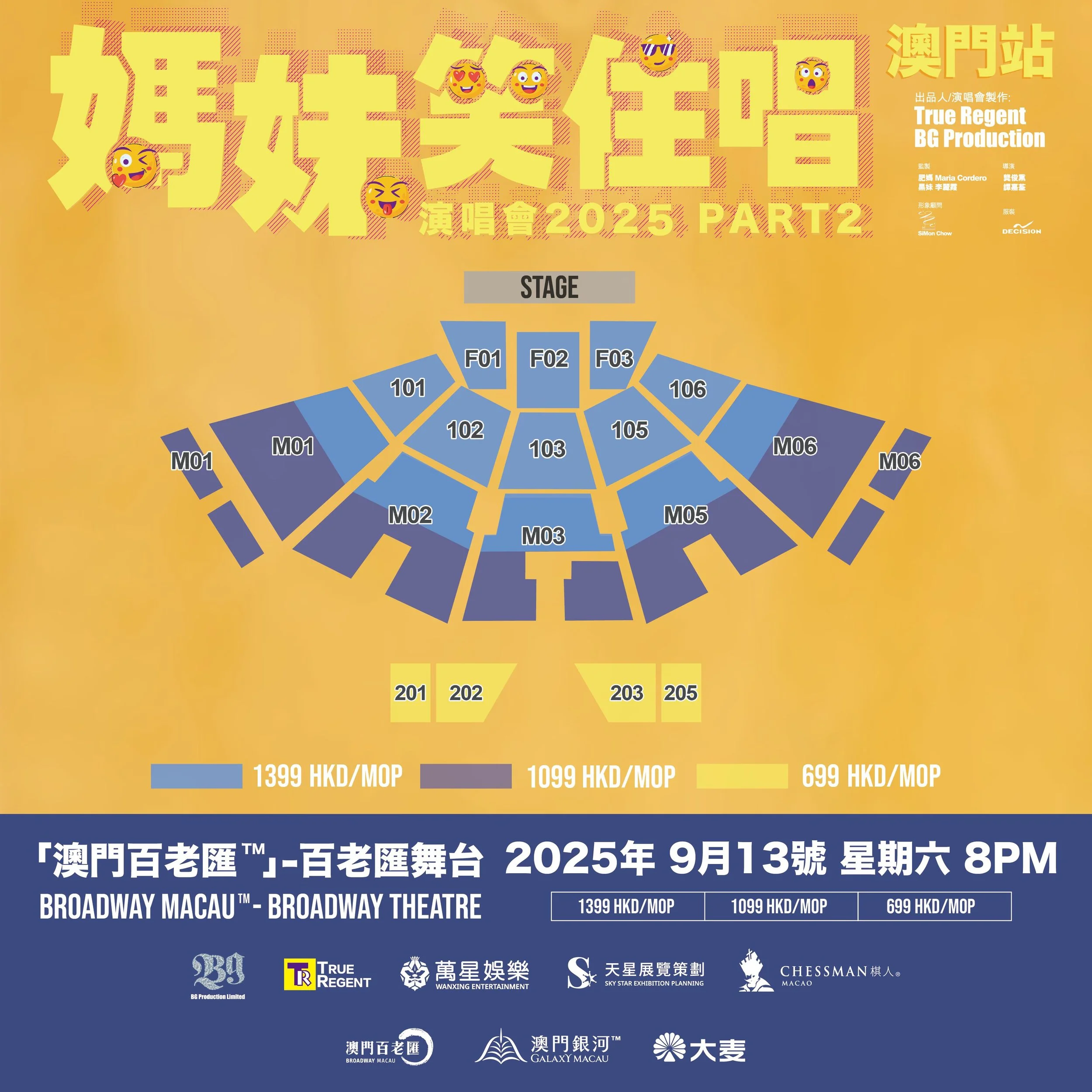 《媽妹笑住唱演唱會2025 PART 2 - 澳門站》9月百老匯舞台開唱│門票7月8日公開發售
