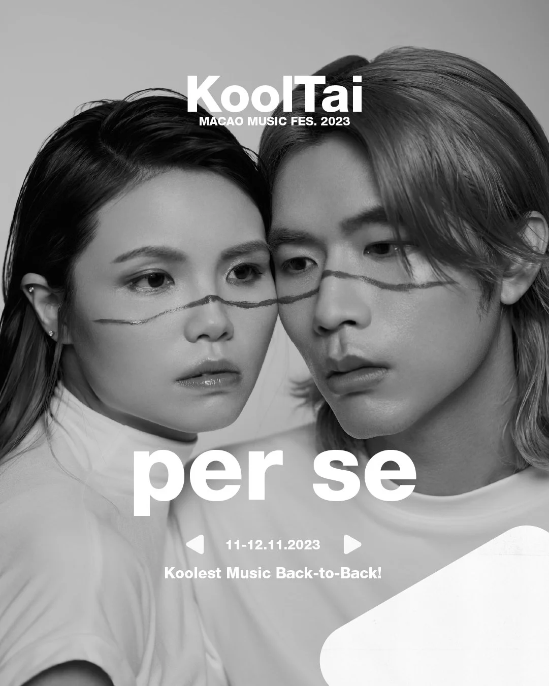 香港詩式流行二人組合per se將於KoolTai MACAO MUSIC FES. 2023首次登陸澳門!Stephen Mok和Sandy Ip兩位成員透過聲音、文字、影像讓原創音樂自我解釋,成就per se無邊無界、展現真我的創作風格。組合於2020年憑《粉碎糖果屋》一曲獲得2020年度叱咤樂壇流行榜頒獎典禮「專業推介叱咤十大:第十位」,更榮獲第四屆KKBOX香港風雲榜「年度編輯推薦歌手」等多個獎項。近年陸續在Clockenflap、未來⾳樂祭及UNISON FEST 20.20 對倒並行等大型音樂節佔一席地,記得留意這對風格獨特的雙人組合在KoolTai的精彩演出!