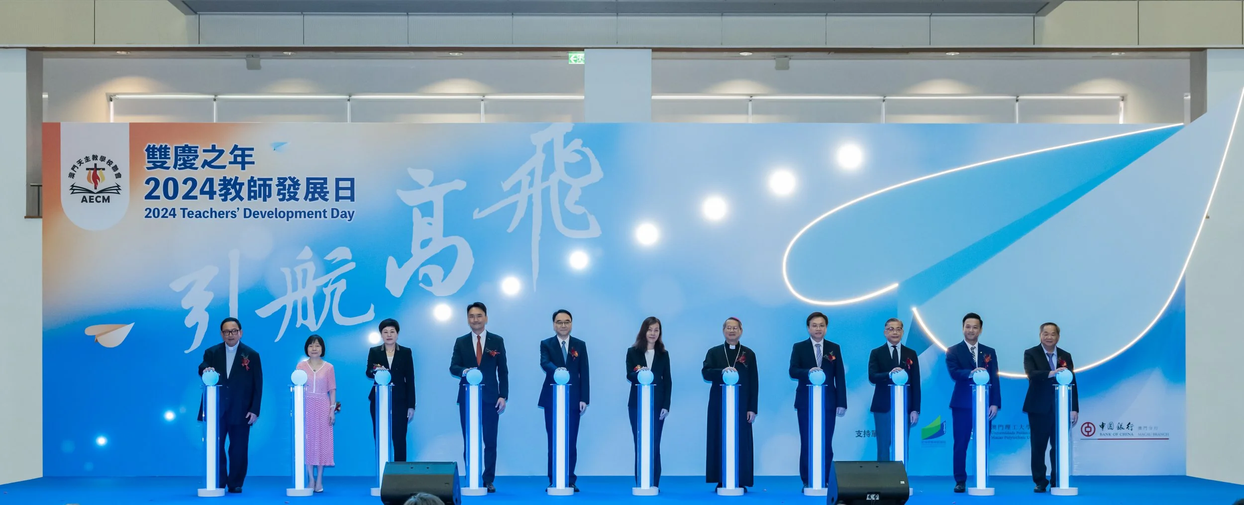由澳門天主教學校聯會主辦,《雙慶之年 2024教師發展日》日前圓滿舉行,活動以「引航高飛」為主題,向合共54位分別投身教育界45年、40年、35年、30年及25年的教師贈送獎牌嘉勉,向持續為教育事業奉獻的本地天主教學校教師送上感謝。